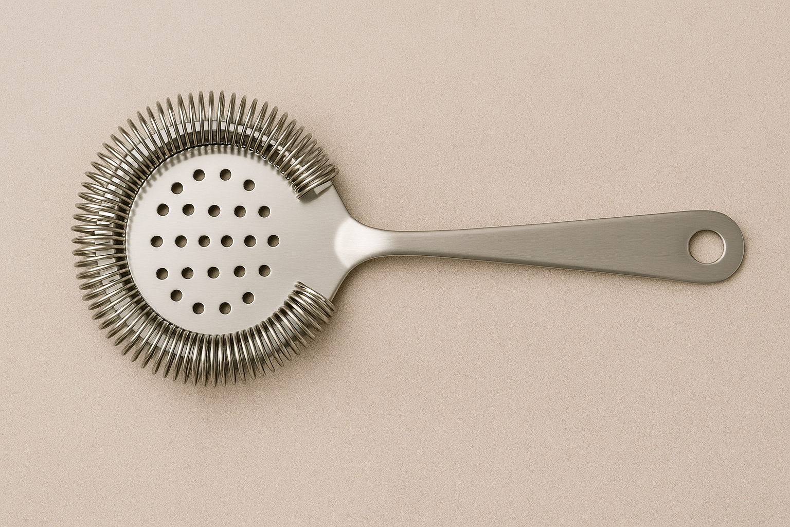 De obicei integrată în shaker-urile cu trei piese, strecurătoarea te ajută să torni lichidul limpede în pahar, fără gheață sau pulpa fructelor. Este un accesoriu indispensabil pentru cocktailuri elegante.