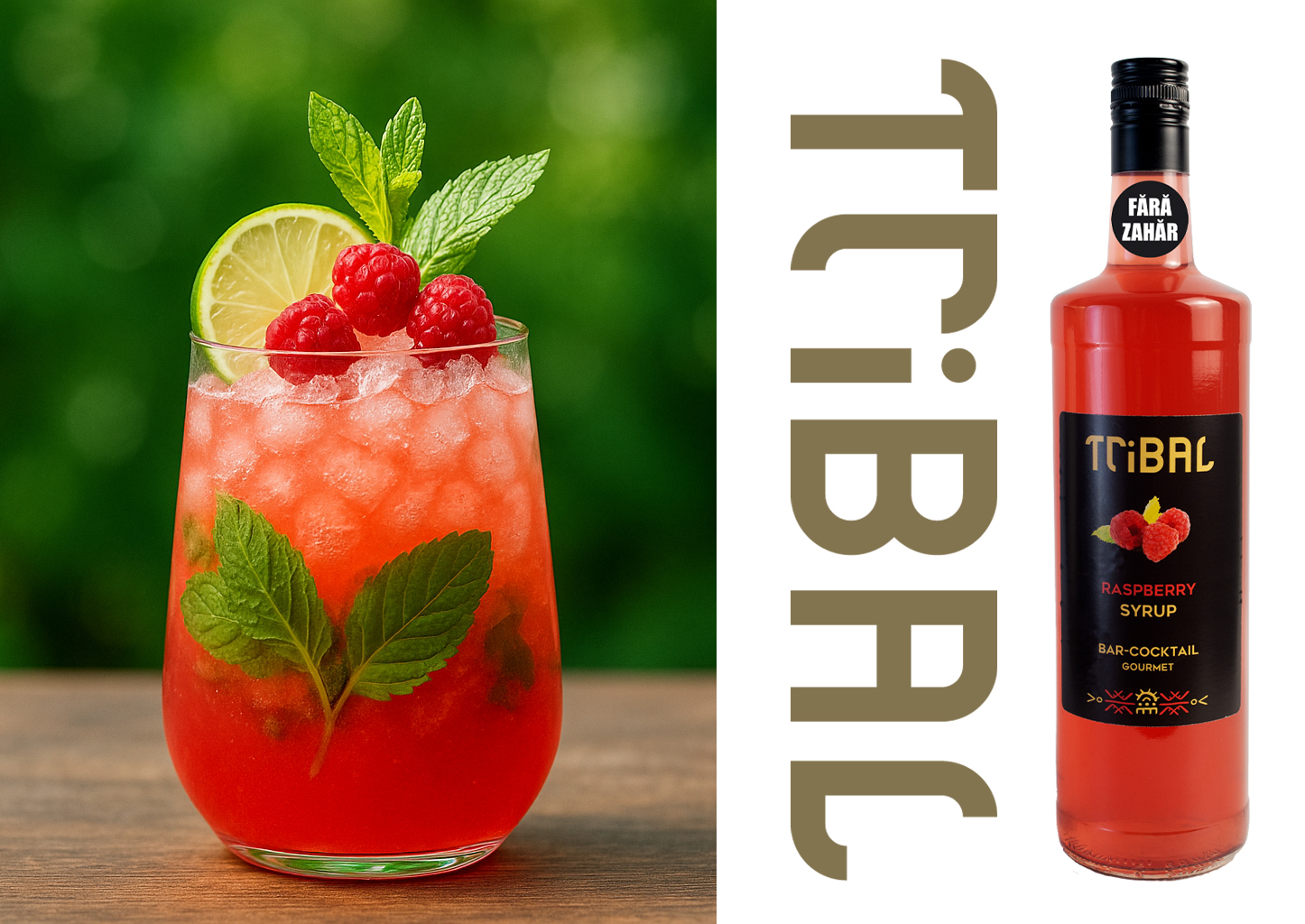 Sirop de zmeură fără zahăr Tribal – pentru un gust fructat, intens și o variantă mai light.