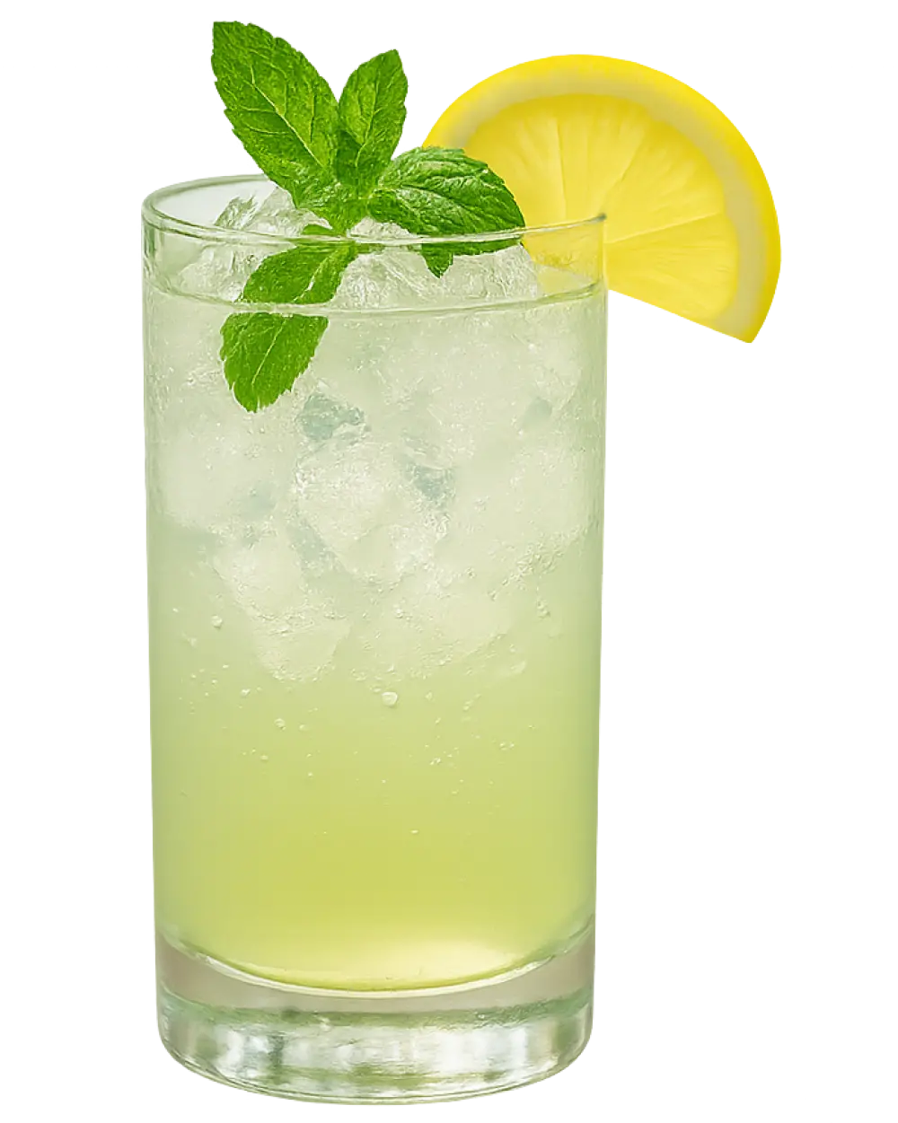 Mint Lemonade Cooler este o băutură clasică, fără alcool, extrem de răcoritoare. Combină dulceața și prospețimea siropului de mint lemonade cu aciditatea sucului de lămâie și efervescența apei minerale, rezultând o limonadă revigorantă, perfectă pentru vară.